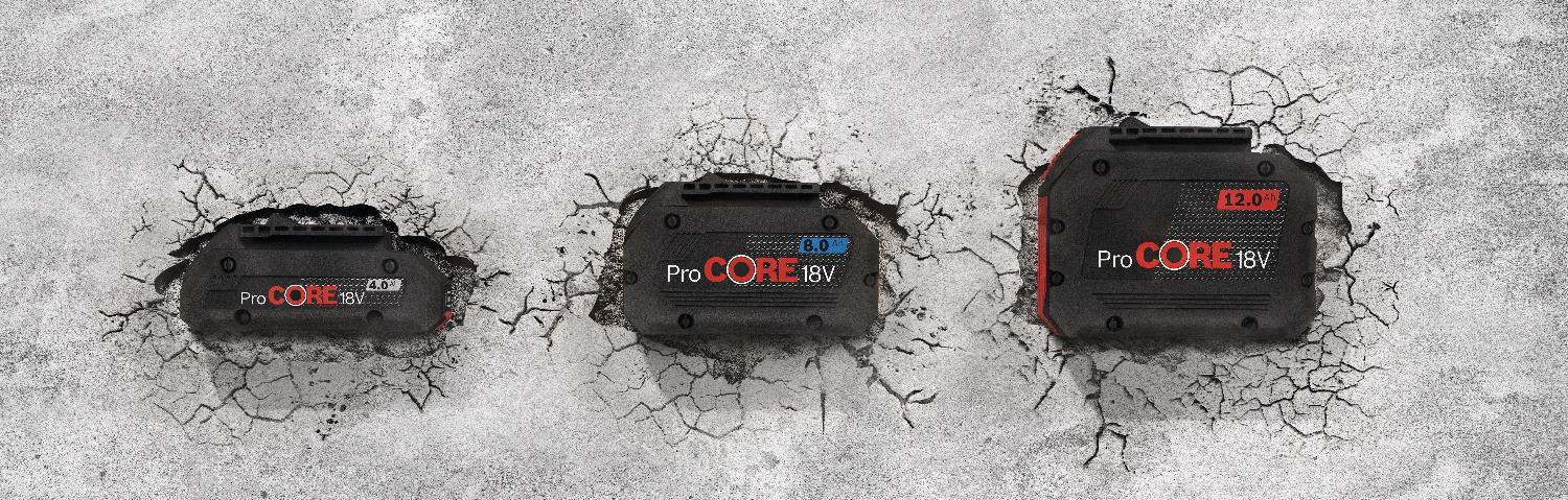 Akumulátory ProCORE18V přináší díky nejmodernější článkové technologii a vynikající regulaci tepla nespoutanou energii přesně podle tvých potřeb. Objev nový rozměr energie pro veškeré elektrické nářadí Bosch Professional 18V ve třech verzích akumulátorů ProCORE18V 4.0Ah, 8.0Ah a 12.0Ah