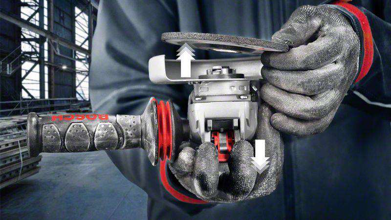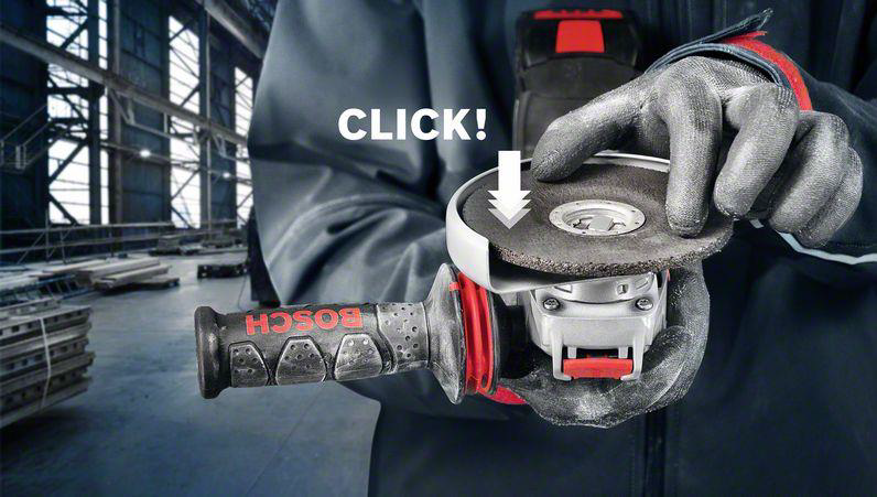 Geniální výměnný systém X-LOCK od Bosch Professional umožnuje rychlou výměnu příslušenství v úhlové brusce jedním zacvaknutím. Skutečně bez klíče a upínací matice!